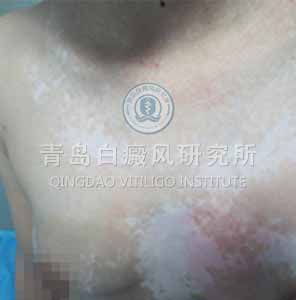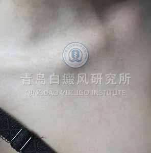 在我院治疗了三个阶段7个多月,患者患处白斑已经消失近85%,背部白斑基本痊愈,胸部白斑也仅残留少许,四肢白斑虽有所减小,但是仍需要继续巩固治疗。不过,患者无需住院治疗,只需定期来我院复诊,并进行针对性治疗即可。