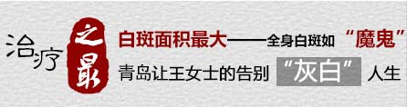 王梅(化名)是我院有记录以来,接诊的白斑面积最大的白癜风患者。其白斑面积已经占体表面积的80%,且全身散在分布。面对如此大面积的白癜风患者,青岛白癜风研究所究竟是怎样治疗的呢?如何助力患者告别“灰白”人生的呢?>>>点击咨询