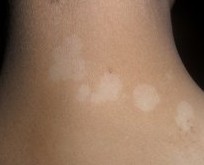 该病为皮损色素完全脱失,呈瓷白色斑,白斑大小形态不一,境界清楚,边缘有色素沉着增加,无自觉症状,暴晒后易出现红斑,甚至水泡,自觉有灼痛、炎症后,白斑可比原发范围大,皮损可发生于任何部位,但较常见于指背、腕、前臂、面颈、生殖器及其周围。白斑常对称或单侧分布,甚至如带状沿神经分布。