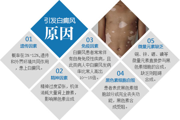 白癜风作为一种常见的色素脱失性皮肤病,以皮肤形成白斑为特征,是一种十分影响容貌的皮肤疾病,以易诊断、难治疗而著称,是世界三大皮肤顽疾之一。任何疾病的发病都是有因可寻的,只有全面了解发病原因,才是攻克白斑顽疾的第一步。对此,青岛白癜风研究所医生组经过多年临床数据分析统计了白癜风的发病原因及诱发因素!