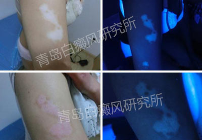 白癜风早期白斑多为浅白色,慢慢发展为云白色、纯白色、瓷白色。对于边界模糊而又无色素增生的早期白斑,有时难以及时辨认。