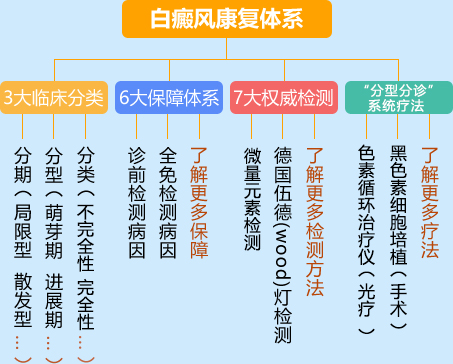 传统诊疗白癜风由于技术水平的限制,往往采用多人一方、千人一法的方式,疗效难以保障。青岛白癜风研究所根据数千例临床总结经验,结合最新医学技术成果, 总结出一套科学、规范、系统的“分型分诊” 多维诊疗系统, 大大提高了白癜风诊疗效果。